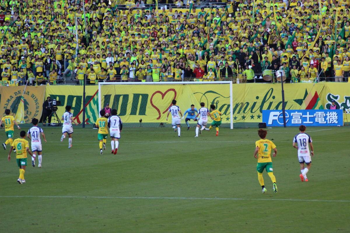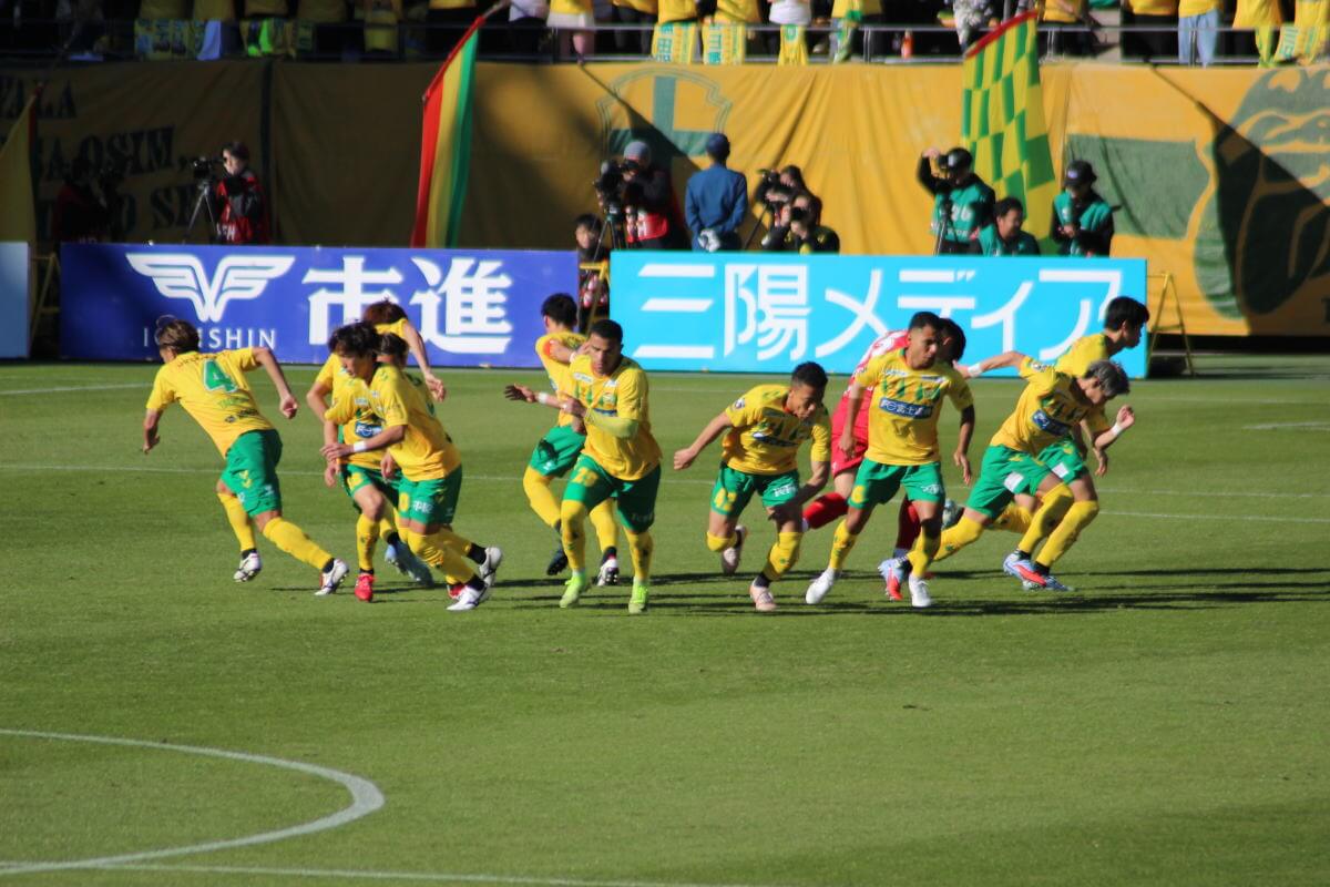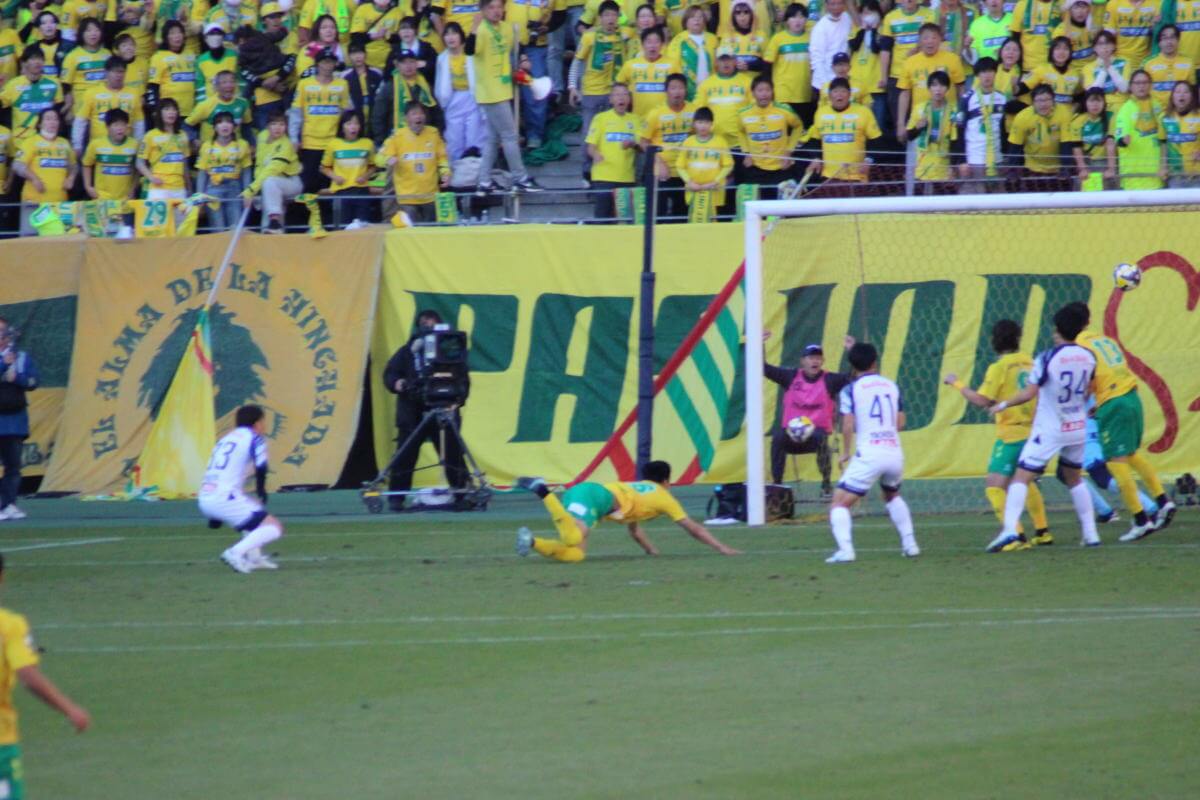その隙を衝き、ジェフはスローインからの再開で、品田が密集をするりと突破してマイナスのクロス。こぼれ球に走り込んだエドゥアルドが右足を振り抜き、キーパーも反応できない弾丸シュートが右隅に突き刺さる。