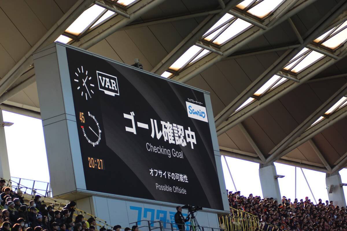 VARが入り、重苦しい時間が流れる。オフサイドか否か。判定の重み。ゴール裏では『これが入っても入らなくても0-1のつもりで再開後しっかり応援しよう』とコールリーダーから声がかけられる。