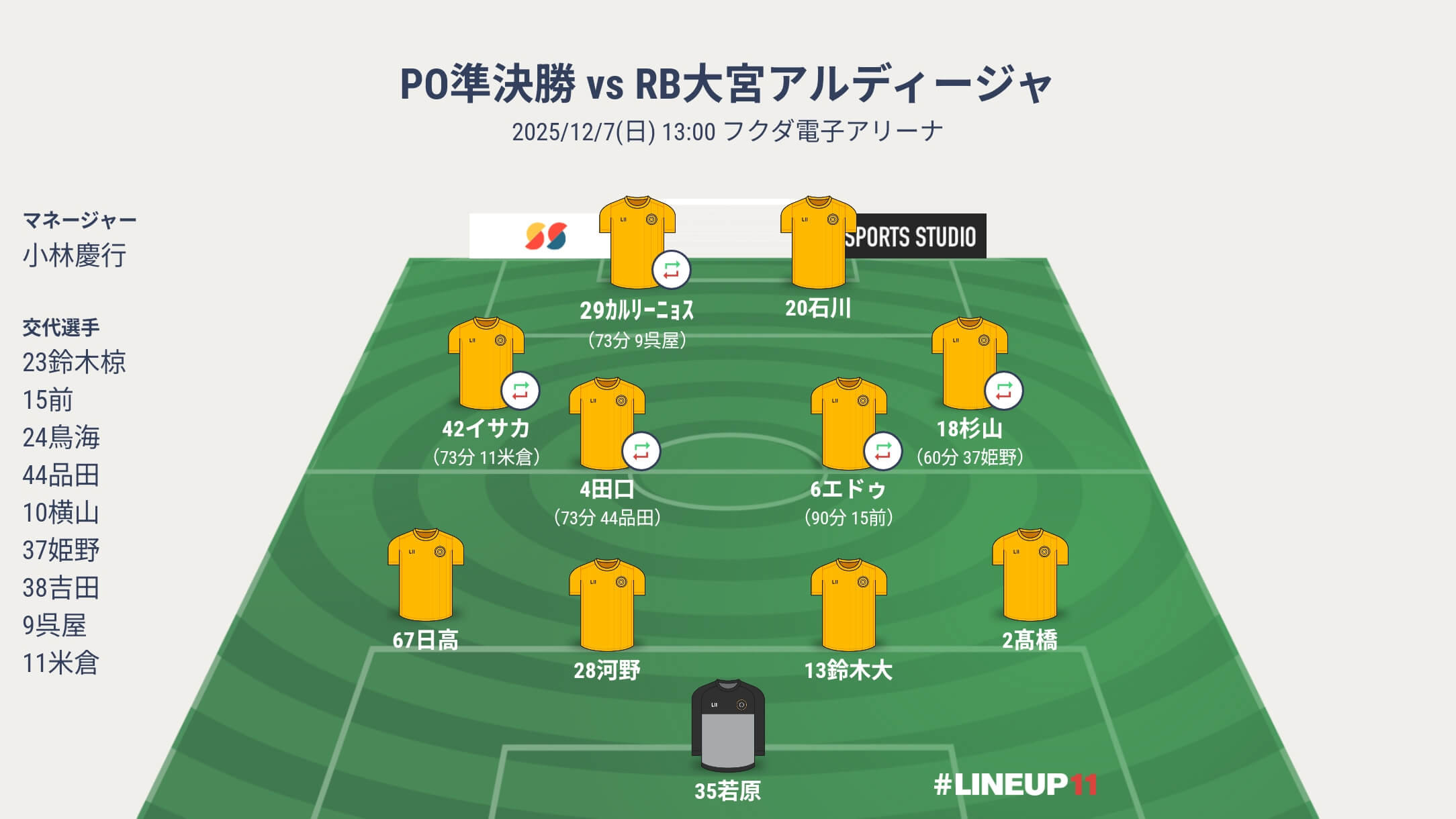 スタメンには、椿に代わって杉山。イサカが左に回る。