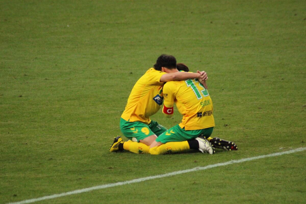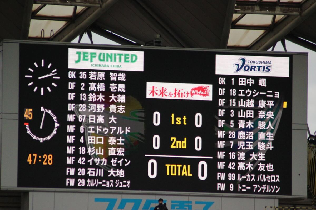 互いにギリギリのプレーをする中で、徳島の主将・渡が、競り合いの中で足を捻り、涙を流しながらピッチを後にする。その無念に突き動かされたか、徳島は乾坤一擲のカウンターでジェフのゴールに迫る。